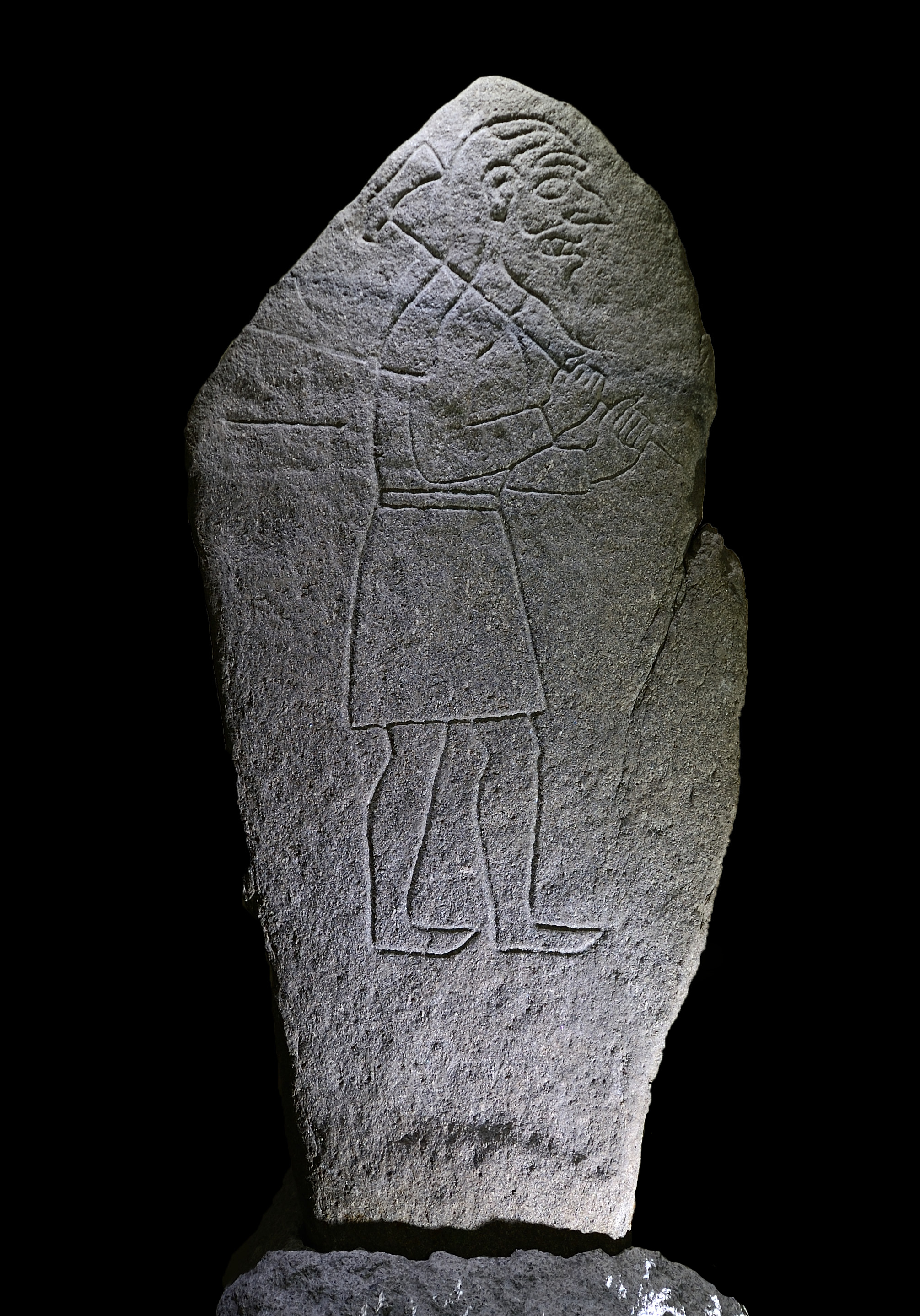 Because of building works and alterations to the entrance foyer at Woodhill House, Aberdeenshire Council’s HQ, a decision has been taken to relocate The Rhynie Man sculptured stone. It has been moved (as of January 2026) to the entrance of Aberdeenshire Museums Service HQ in Mintlaw, where public access can still be facilitated. Public access times will be during staffed hours, that is Monday – Friday, between 9am and 5pm.